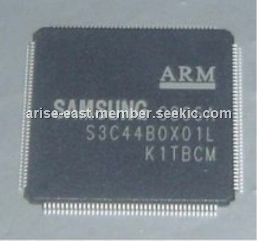 S3C44BOX01L features: (1) Architecture: Integrated system for hand-held devices and general embedded applications, 16/32-Bit RISC architecture and powerful instruction set with ARM7TDMI CPU core. Thumb de-compressor maximizes code density while maintaining performance. On-chip ICEbreaker debug support with JTAGbased debugging solution. 32x8 bit hardware multiplier. New bus architecture to implement Low-Power SAMBA II(SAMSUNG ARM CPU embedded Micro-controller Bus Architecture); (2) Cache Memory & internal SRAM: 4-way set associative ID(Unified)-cache with 8Kbyte. The 0/4/8 Kbytes internal SRAM using unused cache memory. Pseudo LRU(Least Recently Used)Replace Algorithm. Write through policy to maintain the coherence between main memory and cache content. Write buffer with four depth. Request data first fill technique when cache miss occurs.
